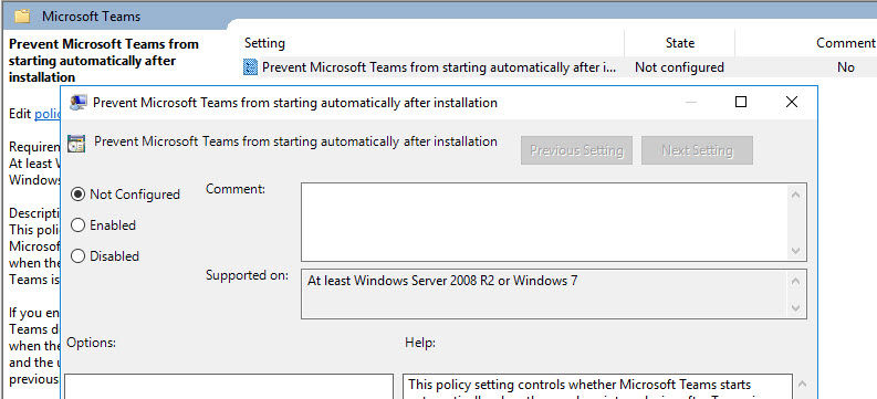 - Enable to prevent Microsoft Teams from starting automatically after installation policy under User Configuration\Policies\Administrative Templates\Microsoft Teams